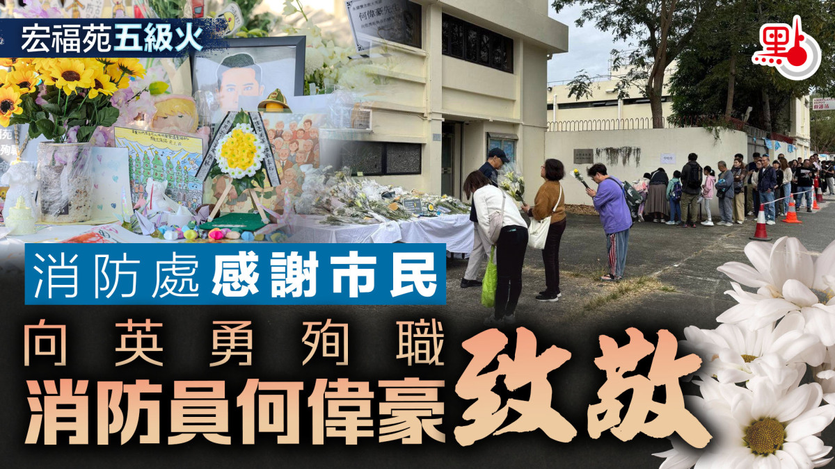 香港消防處今日(9日)在社交平台發文,感謝每位到沙田消防局向何偉豪獻花道別的市民,共渡這個艱難時刻。這份心意不但是對他捨己救人的肯定,更是對何偉豪家屬與同袍的支持和鼓勵。