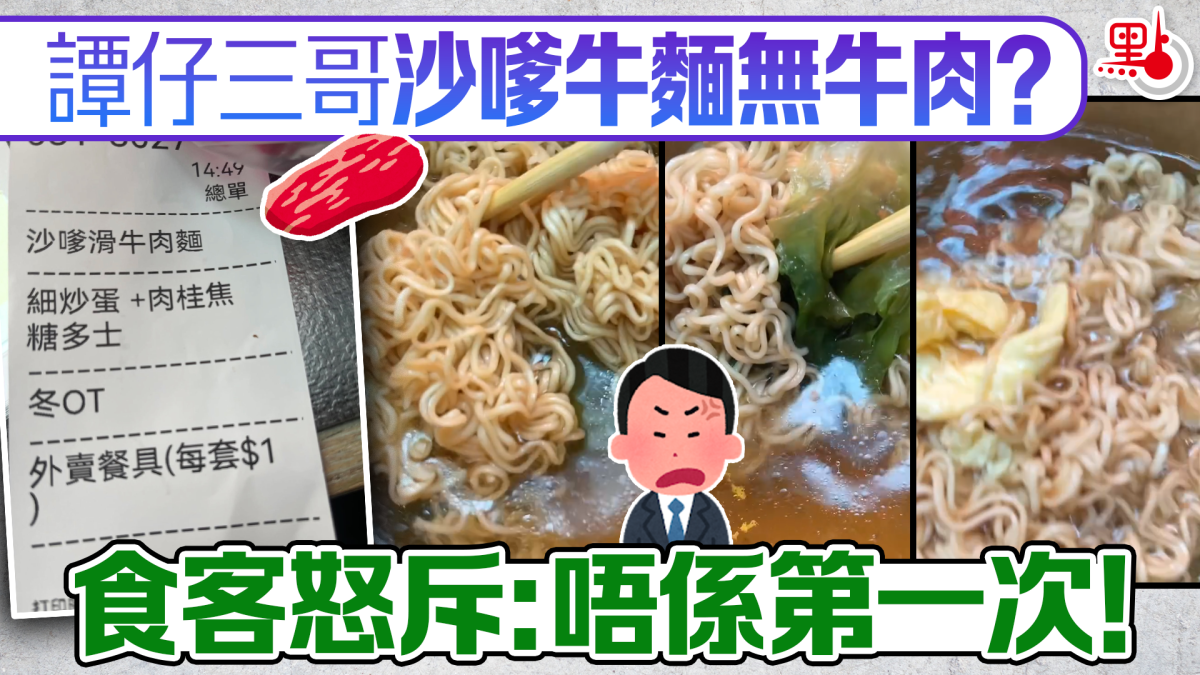 【點新聞報道】沙嗲牛麵竟無牛肉?有網民日前分享奇葩經歷,指自己前兩日外賣了譚仔三哥的下午茶,裏面包含了一份沙嗲牛肉麵,然而在麵中,卻撈不出一塊牛肉。網民怒上網發文「已經唔係第一次,激死我了」。