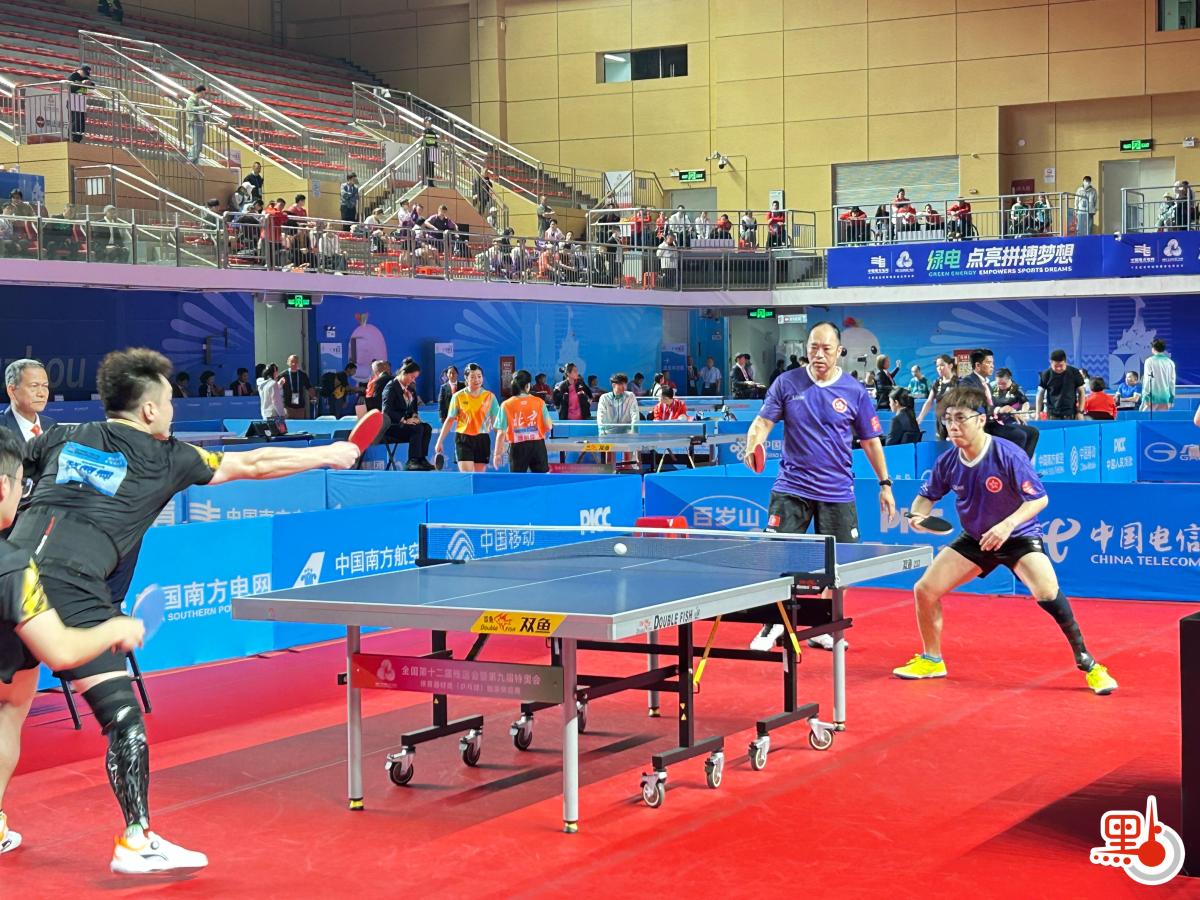 在率先舉行的XD14混合雙打比賽中,港隊黃翰林/彭穎加與該項目頭號種子選手江蘇隊閆碩/范怡雯苦戰5局,最終以3∶2奪得金牌。比賽結束不到半小時,彭穎加又與羅嘉晞組隊參加TT6女子雙打比賽,最終不敵重慶隊金芋成/李沁穎組合,收穫一面銀牌。在隨後開打的TT5男子雙打比賽中,港隊蔡兆雄/鄭中組合以0∶3不敵江蘇隊,收穫一面銅牌。