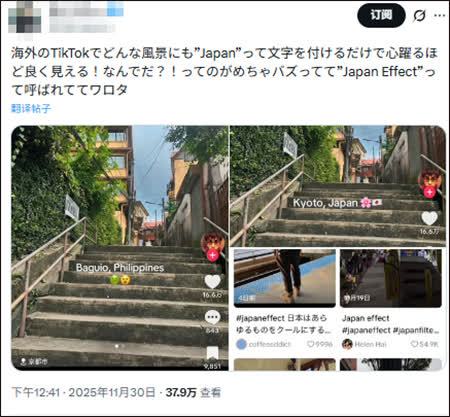 據美國一家科普分享類網站wikiHow介紹,這源於一個被稱為「日本效應」(Japan effect)的TikTok趨勢。甚至連部分日本網民認為,「日本效應」非常強大,僅僅是地點標籤就可以過濾和影響人們對一條普通街道或一個普通美國街區的感知。