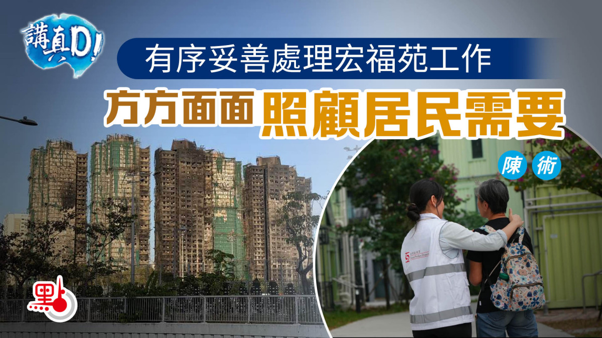 不同人士包括候任議員,都表現出對宏福苑的關切,筆者認為,眼前有幾項工作必須做好,當搜索人員仍在尋找失蹤人士時,正流離失所的宏福苑居民,有部分其實正住在面積較小的過渡性房屋,如果重建是需時三、四年的事情,那麼這三、四年,是否有一個更舒適或安穩的居所,可以讓災民暫住?例如是新建成的公屋或居屋等,令他們在等待的時間都有一個暫時安穩的居所。