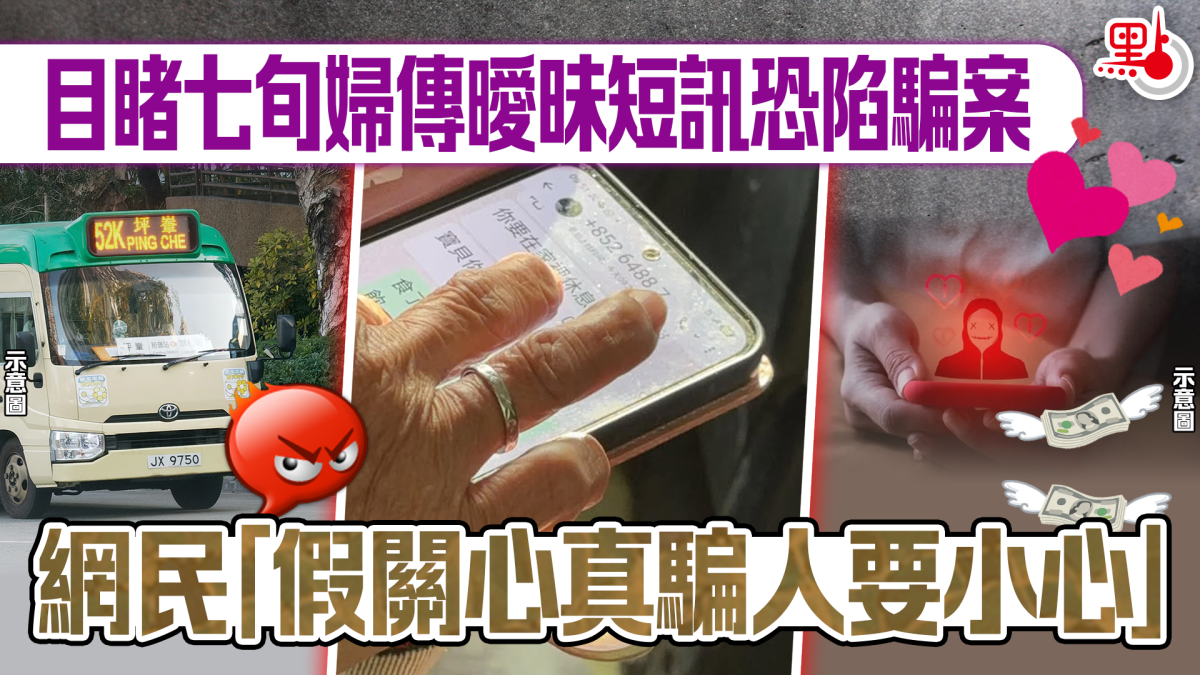 【點新聞報道】近日有市民於社交平台發文,指搭小巴時目睹身旁一位阿婆透過手機與他人傳送曖昧短訊,兩人對話中竟出現「寶貝你今天怎樣了」、「好點了嗎」等內容,發文者擔心該位阿婆可能陷入了網上情緣騙案,故發文提醒網民需留意家中長者以免蒙受損失。