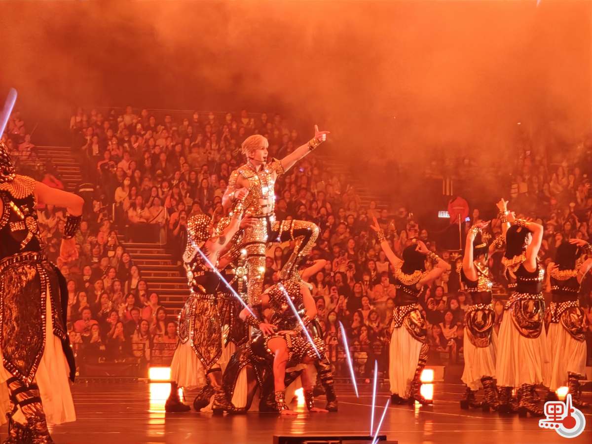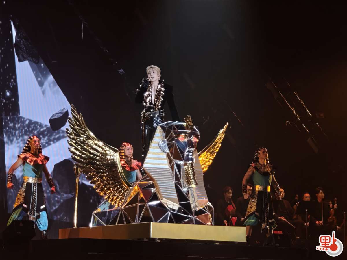第四部分以黑金色調服裝登場,服飾綴有蛇形裝飾,並搭配插翅的獅身人面像座台,異域風情濃厚。獻唱《你都有今日》時,他身穿金碧輝煌的低胸戰衣,站在埃及風裝置前如王子出巡。隨後第五部分換上紅黑皮衫褲,勁歌熱舞《MY LIFE》《Rude Boy》。
