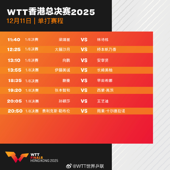 WTT香港總決賽進入第2比賽日,一鍵收藏今日賽程: