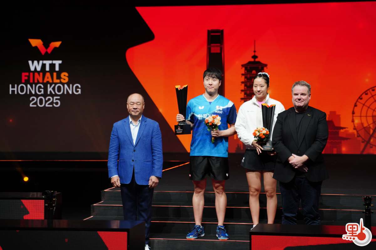 【點新聞報道】WTT香港總決賽2025今日(13日)比賽繼續。今晚混雙決賽,王楚欽/孫穎莎對陣韓國組合林仲勳/申裕斌,孫穎莎帶傷出戰,最終王楚欽/孫穎莎0-3林仲勳/申裕斌,比分為9-11、8-11、6-11,林仲勳/申裕斌獲得混雙冠軍,王楚欽/孫穎莎獲得亞軍。