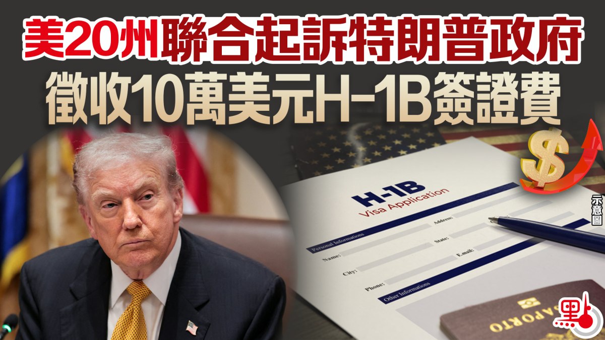 加利福尼亞、紐約、馬薩諸塞、伊利諾伊和新澤西等20個州12日向馬薩諸塞州波士頓一家聯邦法院起訴特朗普政府。加州總檢察長羅布·邦塔在聲明中說,按照法律規定,簽證費僅用於負擔相關審批成本,而10萬美元H-1B簽證費遠超成本。