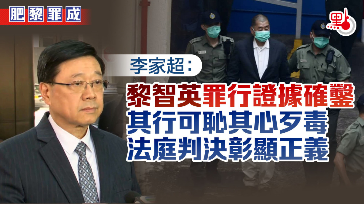 李家超表示,法庭將黎智英和三間被告公司的案件,以及早前已承認控罪的八人的關連案件,一併押後至2026年1月12日聽取求情,然後公布判刑日期。法庭裁定黎智英及《蘋果日報》相關三間公司罪名成立,確認黎智英利用《蘋果日報》勾結外國或境外勢力,危害國家安全。黎智英長期利用旗下媒體《蘋果日報》肆意製造社會矛盾、挑撥社會對立,煽動仇恨、美化暴力,公然乞求外國「制裁中國」、制裁香港特區、招引外部干預。黎智英損害國家根本利益和香港市民福祉,其行可恥,其心歹毒。黎智英恣意妄為的罪行是在眾目睽睽下進行,證據確鑿,法庭的定罪判決彰顯了法律的正義,維護了香港的核心價值。