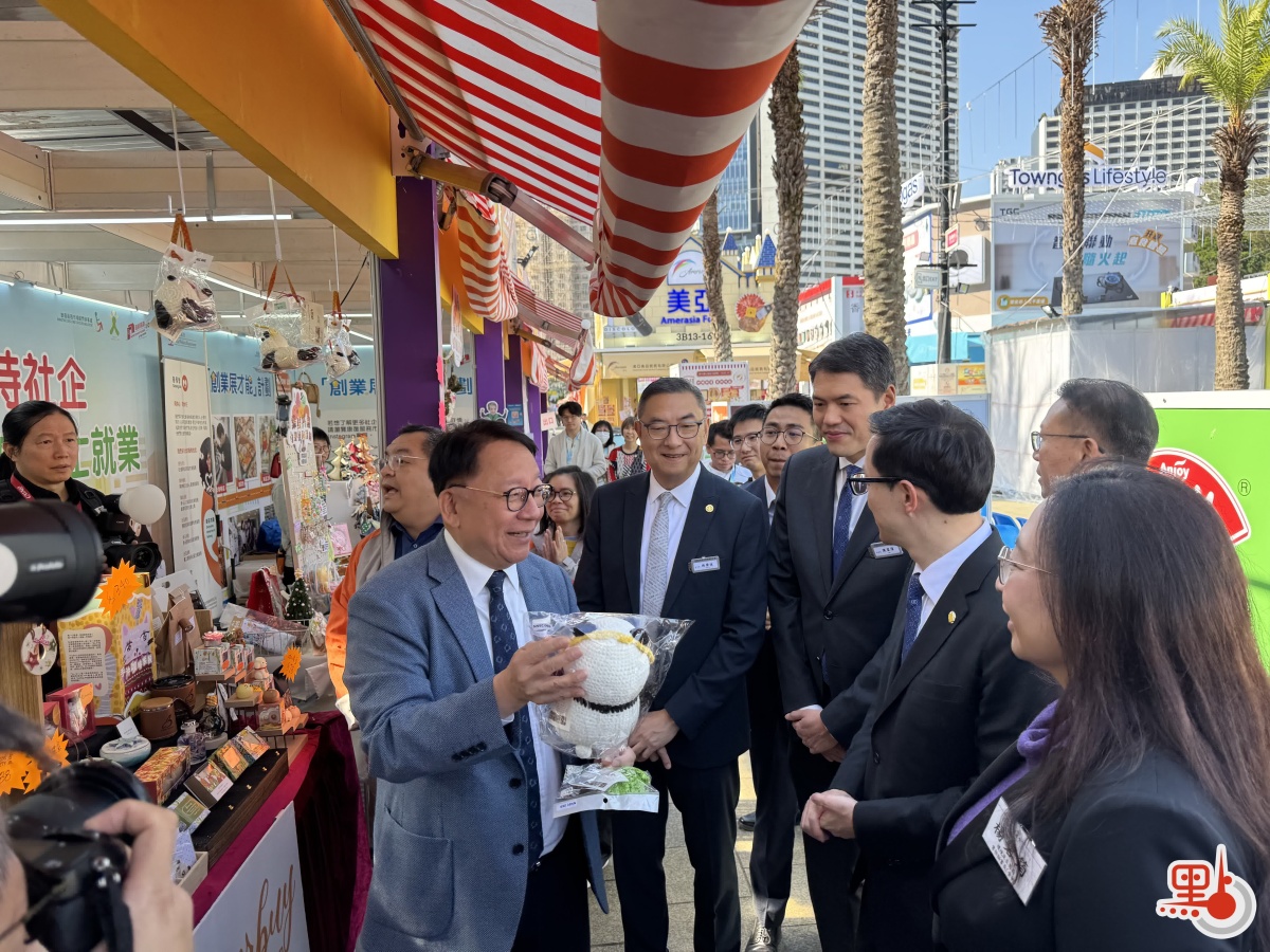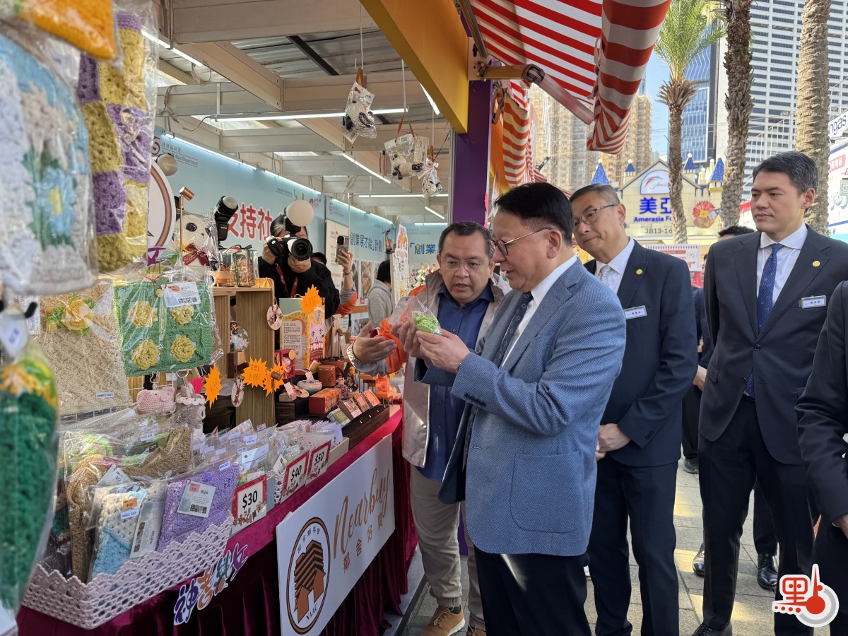 陳國基亦在多個攤位進行消費,以實際行動支持中小企業,購得雙鐵炒鑊、2罐紅燒吉品鮑、1斤南非鮑魚、2盒花膠雞湯,以及由長者製作的熊貓公仔和白菜鑰匙扣鈎織作品,共消費3808港元。