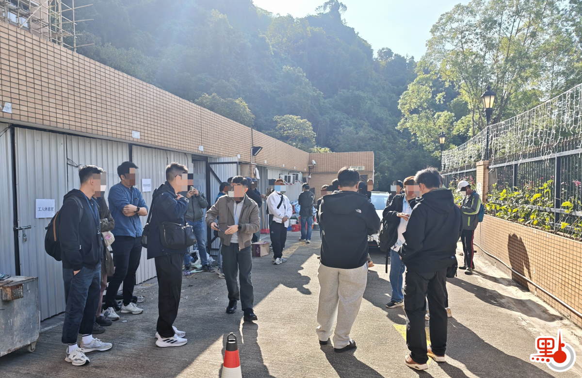 【點新聞報道】大埔宏福苑五級火災造成嚴重死傷,涉事大維修工程承辦商「宏業建築工程有限公司」(宏業)早前被傳結業,今日(15日)上午,有數十位搭棚工人於同樣由宏業承辦大維修的薄扶林碧瑤灣項目追討欠薪。