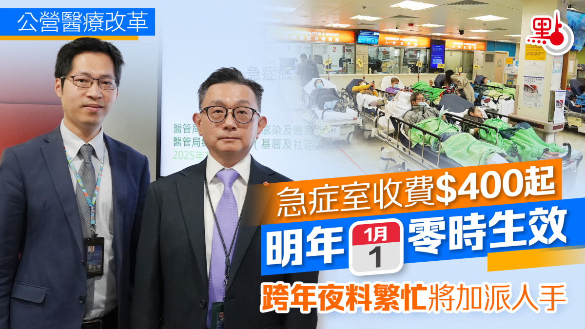 【點新聞報道】醫院管理局(醫管局)將於明年1月1日起實施公營醫療收費改革,其中急症室每次診症收費調整至400港元,危急危殆病人可獲豁免。