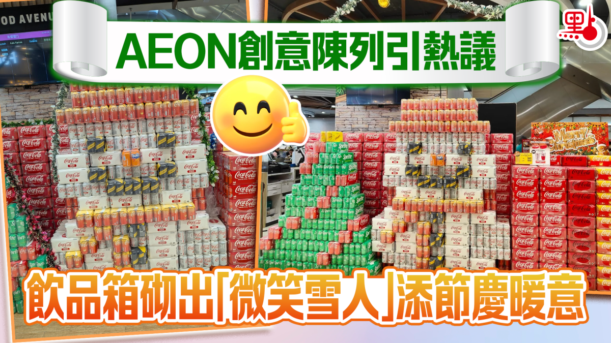 【點新聞報道】臨近聖誕佳節,本港各大商場與店舖紛紛換上節日裝飾,洋溢濃厚節慶氣氛。近日,有網民分享AEON超市一組極具創意的聖誕陳列,原來是有店員用罐裝飲品箱砌成「微笑雪人」及聖誕樹,創意設計引發網上熱議。