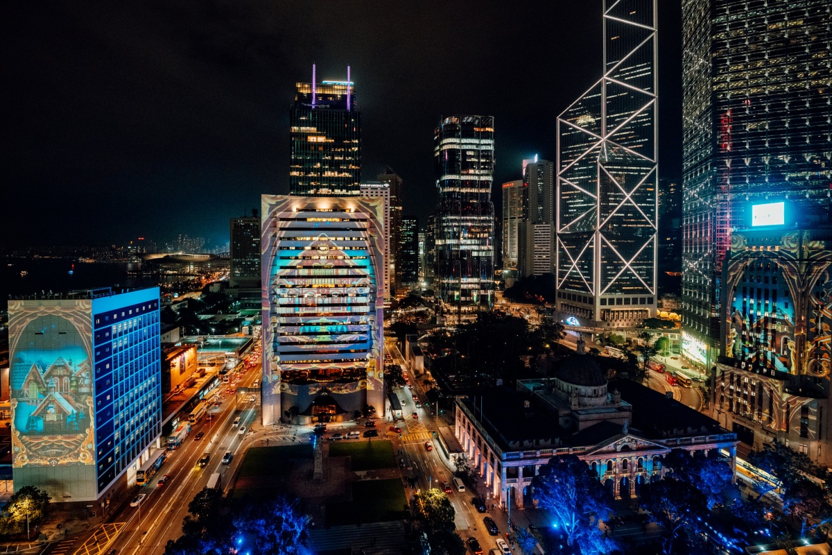 即日起至2026年1月4日,八大地標建築──中國銀行大廈、中銀大廈、終審法院大樓、香港大會堂高座、香港會所大廈、滙豐總行大廈、太子大廈及渣打銀行大廈首度攜手合作,上演沉浸式創意視聽匯演「光影匯・中環」,展現香港夜間的獨特魅力。