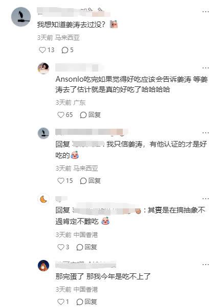 馬來西亞網友和內地網友紛紛表示,雖然MIRROR成員盧瀚霆已經吃過,但姜濤嚴選才是真正的美味試金石。