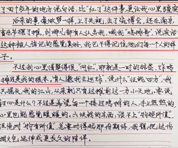 肉餅飯的熱潮能持續多久?我們不得而知。前段時間爆火的「雞排哥」表示,自己很清楚,網紅只是一時的標籤,熱潮終究會退散,生活回歸平靜之後,最根本的還是堅守自己的小小一隅。