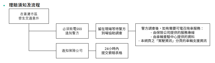 如發生的交通意外並不嚴重,可參閱運輸署提供的車輛緊急支援資訊(包括輪胎電池服務、維修地點、拖車服務),以自行選擇合適的服務商進行車輛維修。