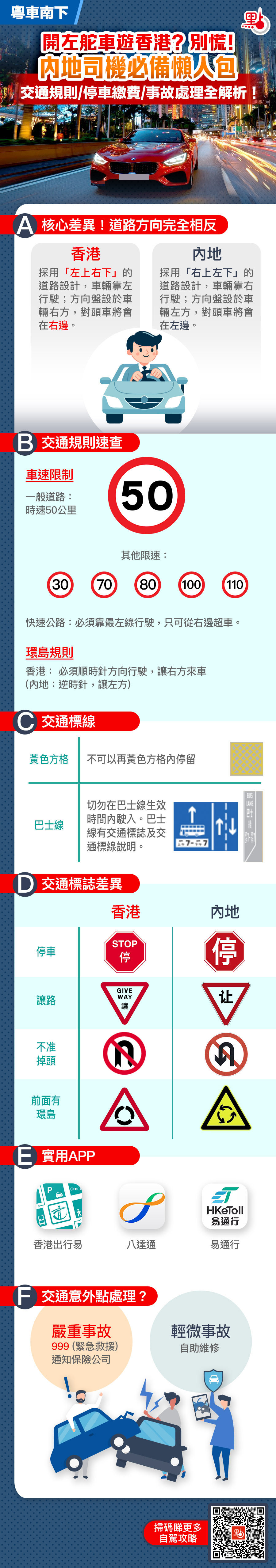 【點新聞報道】「粵車南下」進入香港市區政策將於12月23日(星期二)正式實施,運輸署「粵車南下」預約系統12月15日上午8時半起接受預約。香港與內地交通規則、交通標誌等多有不同,駕駛者應仔細閱讀《道路使用者守則》,掌握及遵守香港的交通規則。為了能讓各位內地駕駛人士來港旅程愉快,點新聞特整理實用攻略,助力「粵車南下」政策順暢實施!