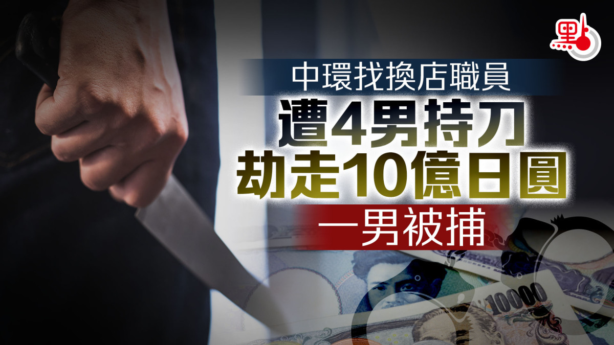【點新聞報道】中環今日(18日)有找換店發生搶劫案。上午9時06分,警方接獲一名找換店職員報案,指在皇后大道中181號對開街頭,懷疑遭4名男子持刀搶劫,賊人搶走10億日圓(約5000萬港元)後往皇后大道中西行方向逃去。