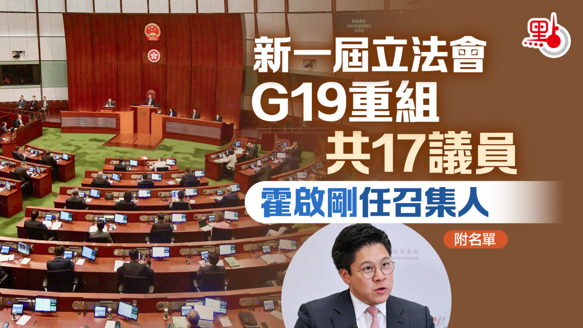 第八屆立法會G19的新召集人為霍啟剛,3位副召集人為姚柏良、簡慧敏及李浩然。