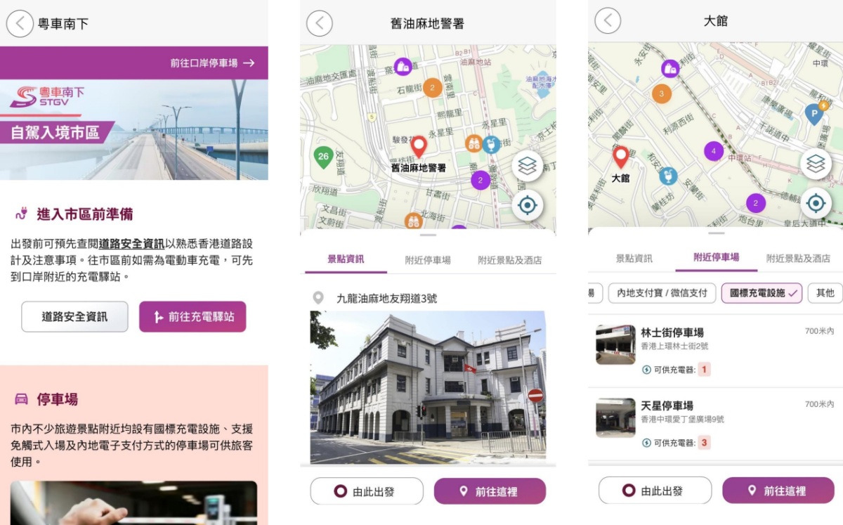 運輸署發言人指出,司機可於專頁查詢「一站式泊車、充電、旅遊資訊」,包括超700個位於景點附近的停車場、超150個可利用免觸式入場及支援內地支付方式的停車場、超60支國標充電樁位置,以及遍及各區觀光、購物、飲食及娛樂景點和酒店資訊,亦可便捷查詢駕駛、公共交通及步行路線。