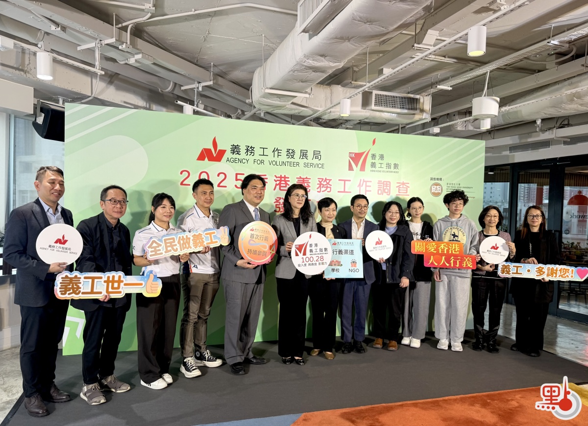 【點新聞報道】義務工作發展局(AVS)今日(18日)公布「2025香港義務工作調查」結果,顯示香港市民平均每周投入約1.5小時於義務工作,「香港義工指數」為100.28,較去年微升0.28%,升幅主要來自市民對義務工作「能促進社會和諧及包容」的評分提升。