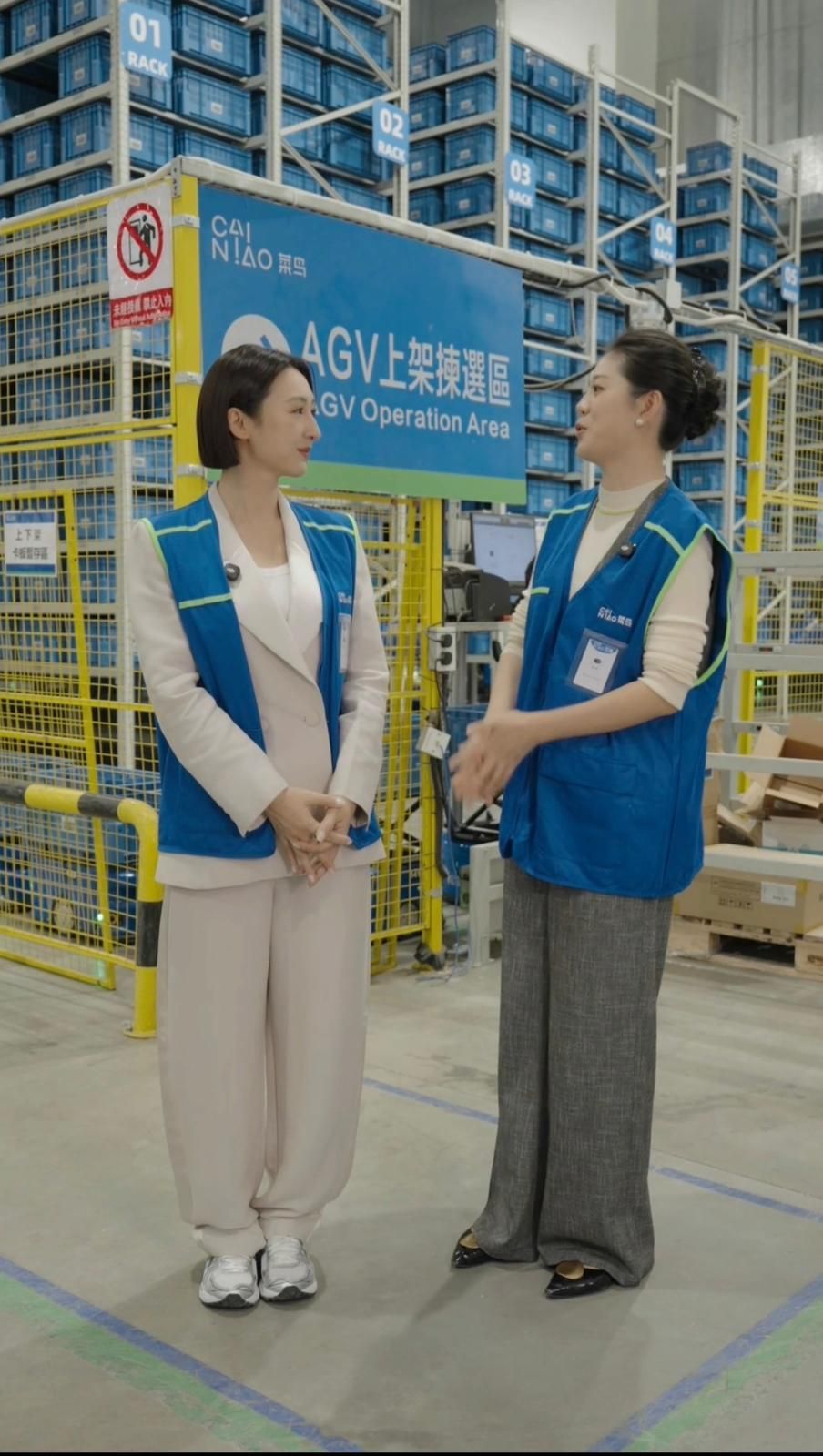 在專業人員指導下,高海寧首次嘗試派送包裹,體驗物流最後一環的實際流程。雖然初時略帶緊張,但很快便被AGV催促「加快腳步」,她笑說:「發完這個就輪到你!」她一邊與鏡頭互動,一邊親手操作自動化設備,不時驚呼:「原來『全球五日達』背後有這麼多高科技!機械臂每6秒處理一件包裹,太厲害了!」她更與AGV機器人「互動」,笑稱它們「比我還忙」,現場氣氛輕鬆又有趣,成功拉近高科技物流與大眾的距離。