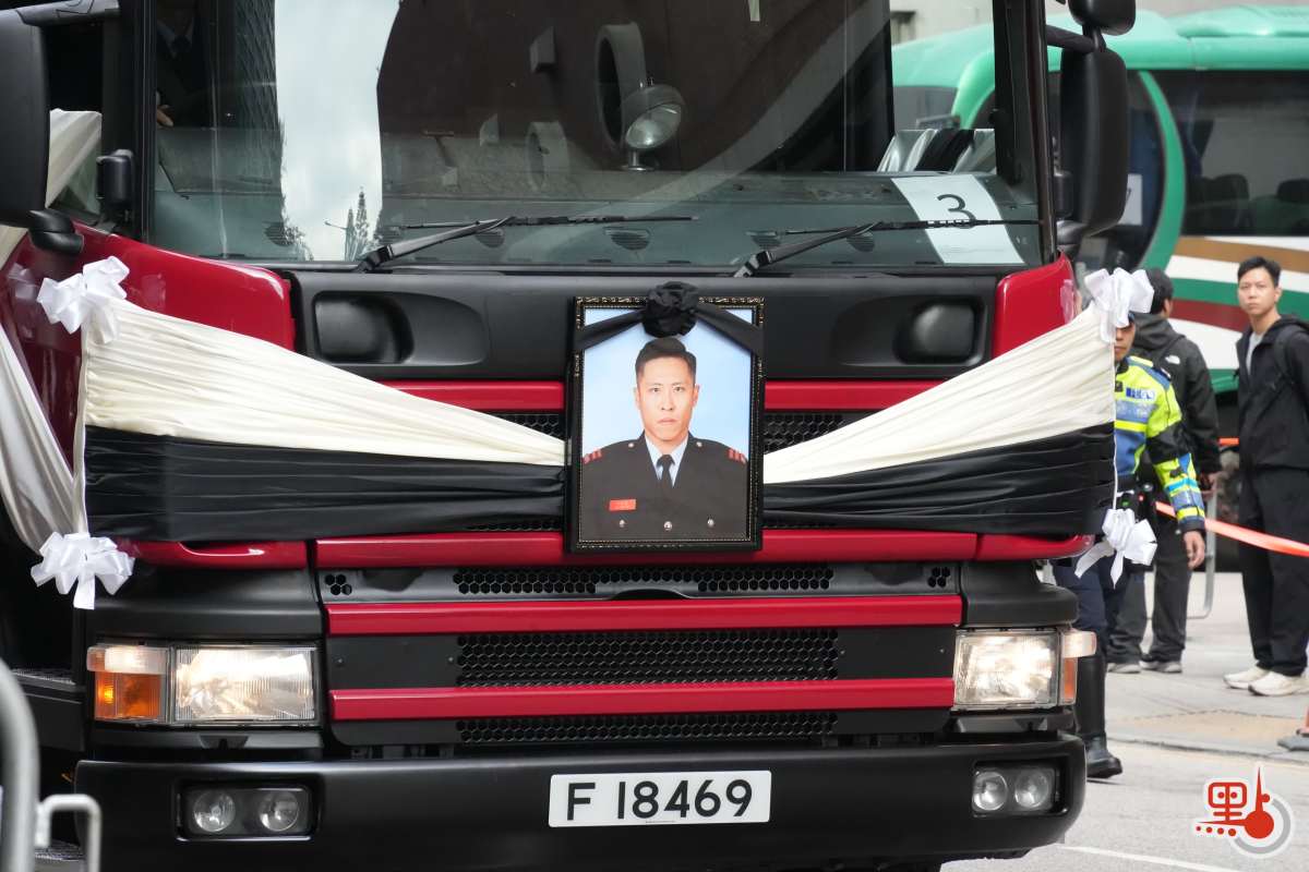 【點新聞報道】大埔宏福苑11月26日發生五級大火,造成嚴重傷亡。於滅火行動中不幸殉職的37歲消防員何偉豪,昨日(18日)於紅磡世界殯儀館設靈,消防處今日(19日)為何偉豪舉行最高榮譽喪禮。官方儀式會在位於地下的靈堂內及殯儀館外舉行,喪禮儀式後,靈車離開殯儀館,會路經大埔太和路、寶鄉街、廣福道和大埔公路元洲仔段,抵達大埔宏福苑進行路祭,之後再前往沙田消防局,由消防處處長楊恩健帶領消防人員列隊致最後敬禮,靈柩之後移送浩園安葬。