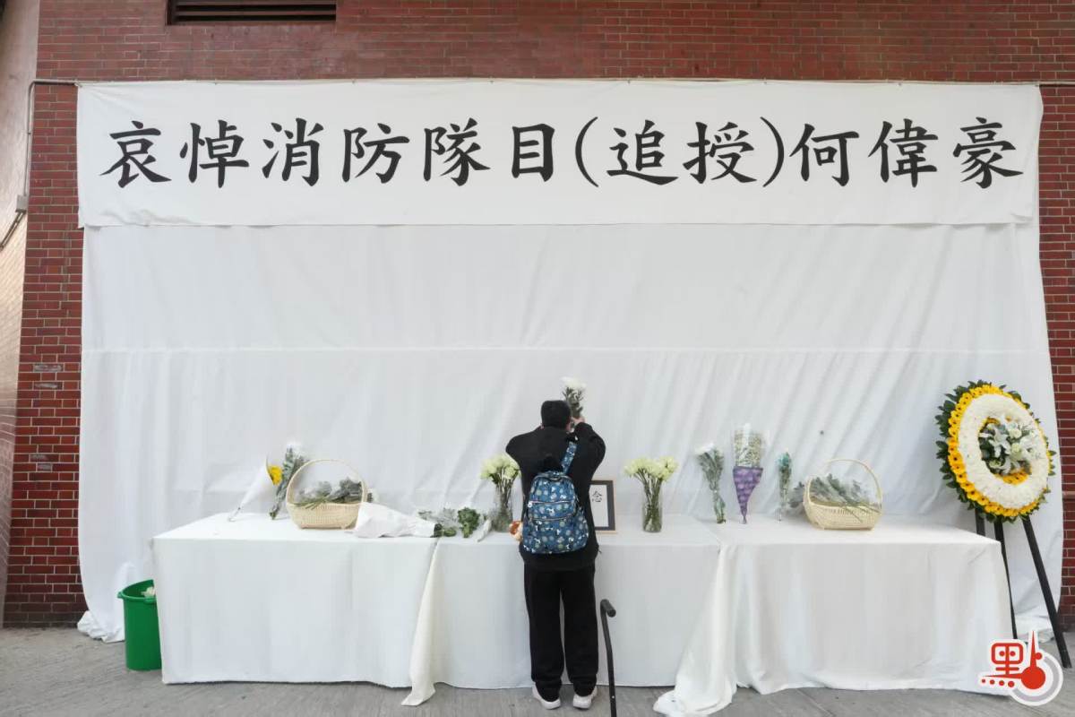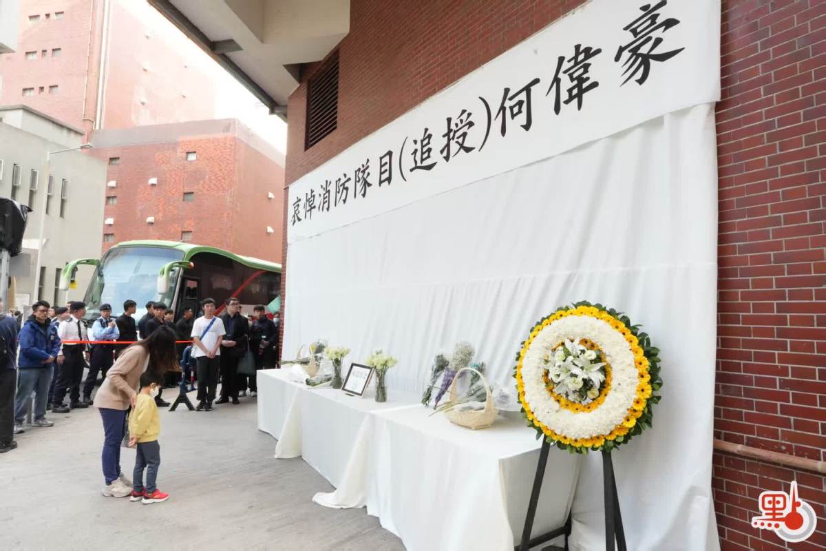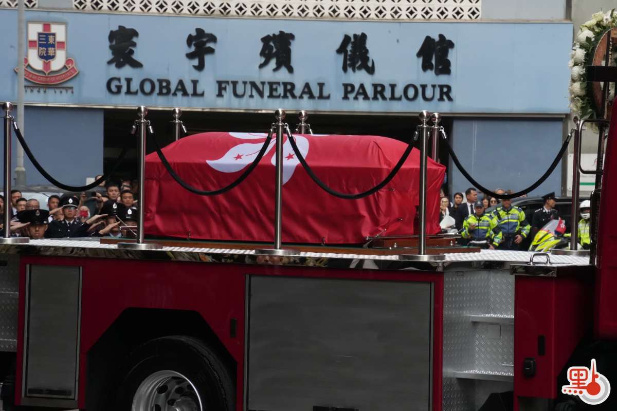 【點新聞報道】大埔宏福苑11月26日發生五級大火,造成嚴重傷亡。於滅火行動中不幸殉職的37歲消防員何偉豪,昨日(18日)於紅磡世界殯儀館設靈,消防處今日(19日)為何偉豪舉行最高榮譽喪禮。