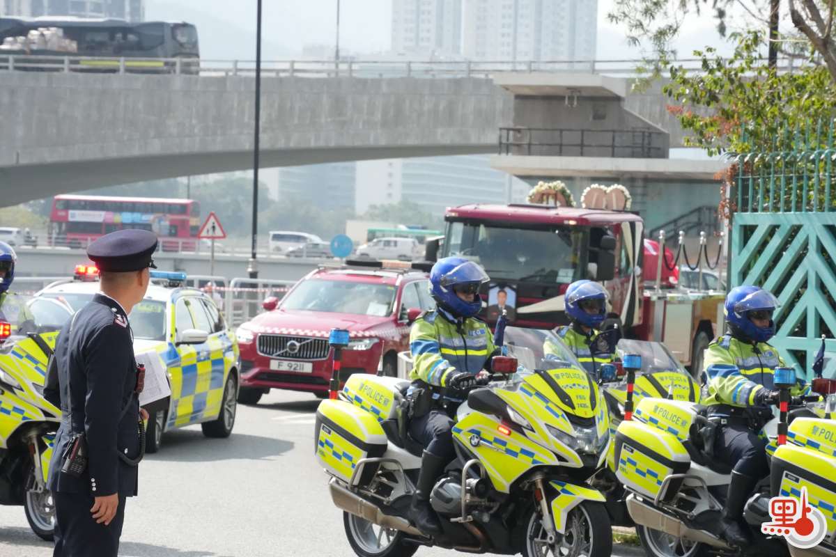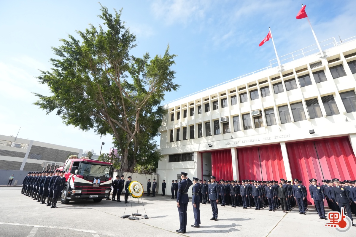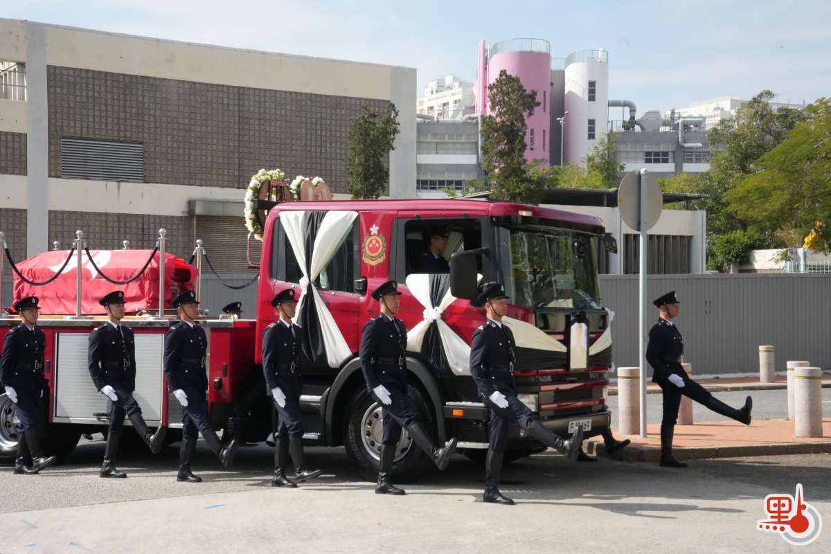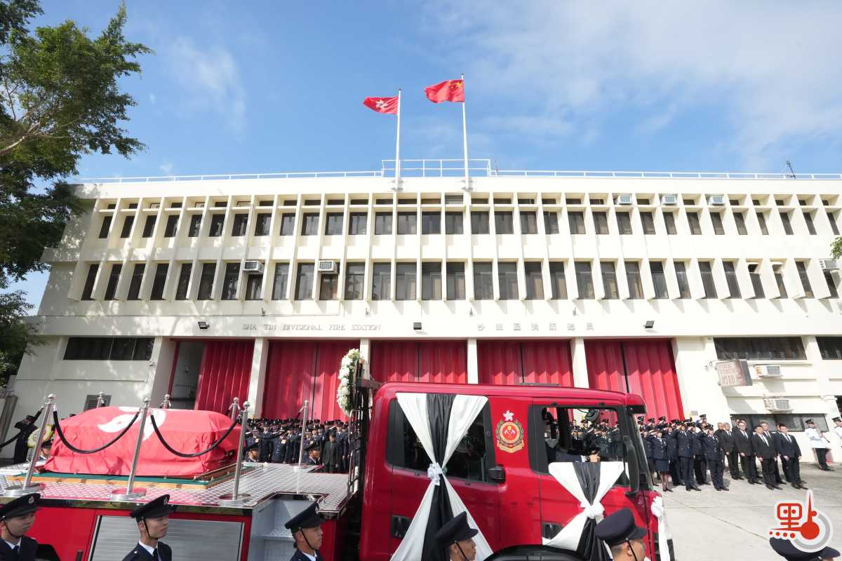 點新聞記者中午12時許看到,靈車到達沙田消防局,消防處處長楊恩健帶領消防人員列隊致最後敬禮。靈柩之後將移送浩園安葬。