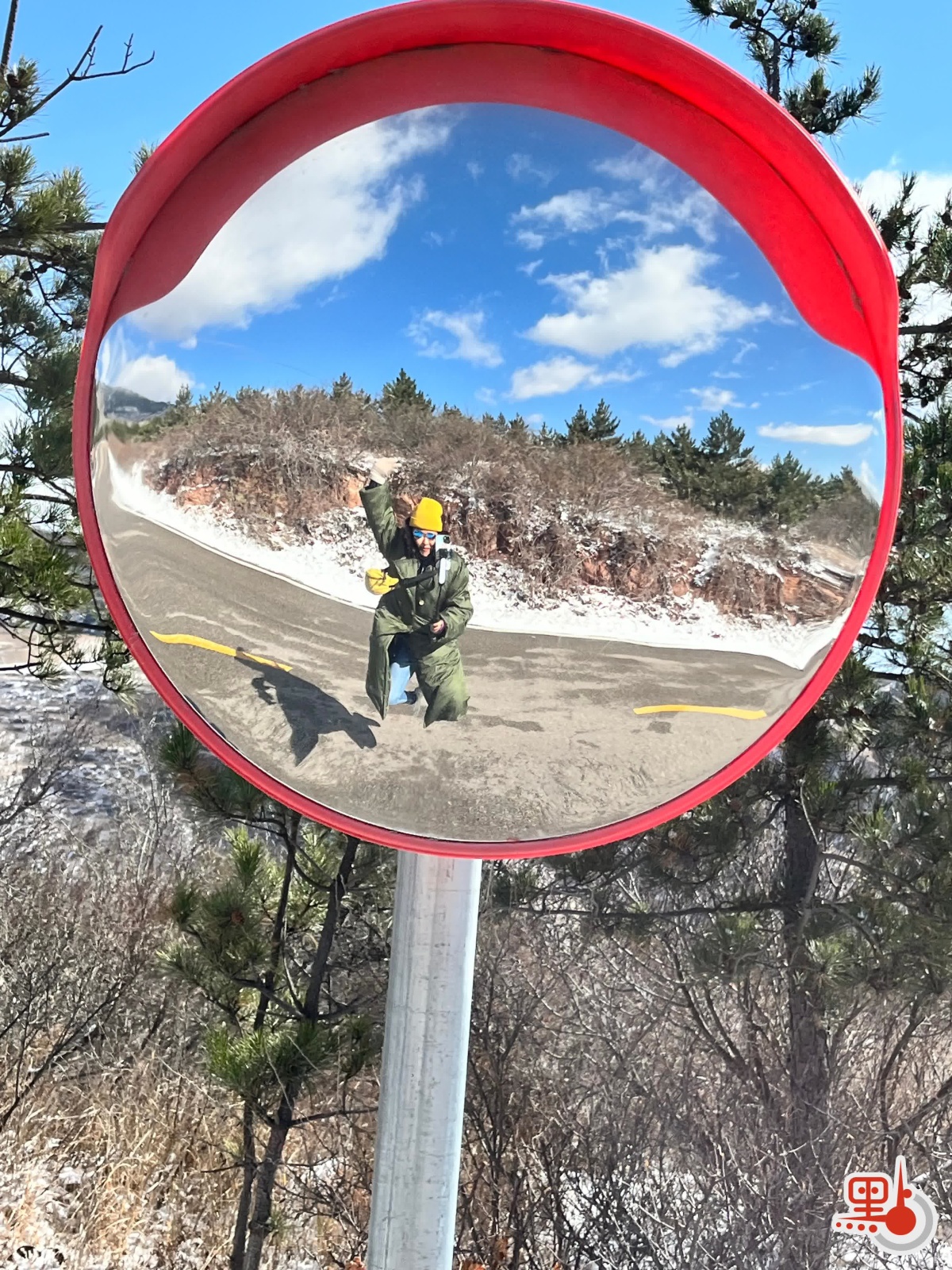 很快,視野豁然開朗,我已到達登山口停車場。因封山之故,偌大的停車場一輛車都沒有,融雪結冰的路面宛如一個大型露天溜冰場。我小心翼翼地滑過去,正要繞過登山入口走向旁邊的一座寺廟,身後傳來一聲洪亮的呼喚。