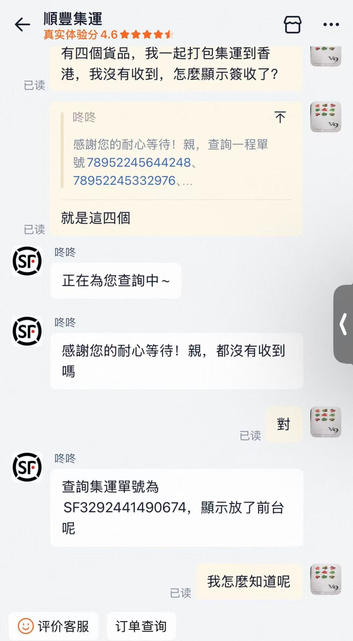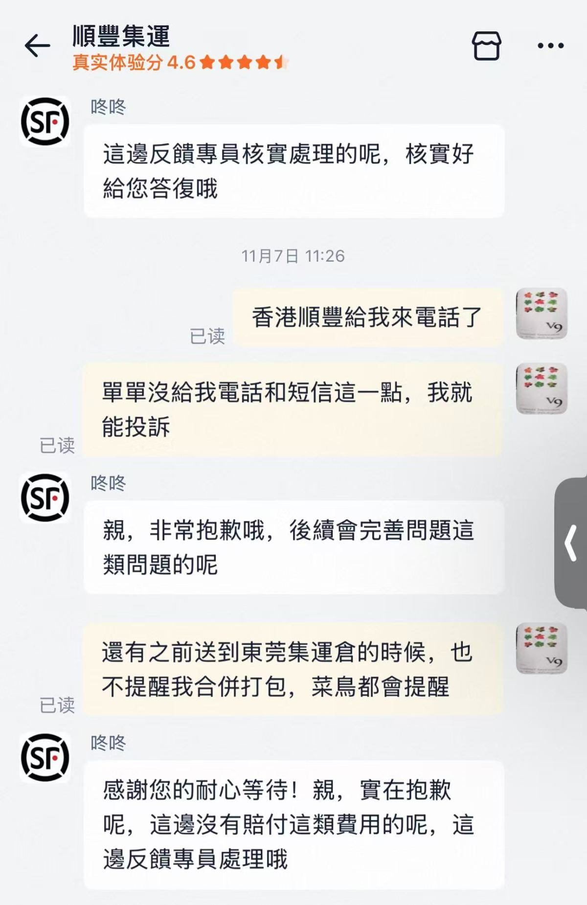 為跨境消費者帶來困擾的不止拼多多,還有淘寶及第三方快遞平台順豐。市民周小姐向記者表示,淘寶無法自動為買家打包及包郵,因此自己習慣將商品送到東莞的集運倉再手動集運。周小姐憶述自己此前用順豐集運遇到不少問題,首先順豐並未通知貨物已到集運倉,待她自行查詢並將貨物集運到港後,順豐過了一星期仍無任何通知,導致自己找不到集運包裹。