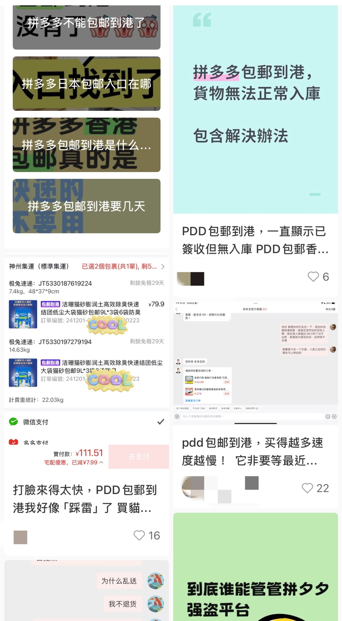 日前,有多位市民向點新聞記者爆料,自己用拼多多、淘寶購物困擾重重,社交平台上網民更吐槽如潮,從小額商品貨不對辦,到包郵易但退貨難,再到快遞丟失、亂派地址成家常便飯。「包郵到港」的便利背後,或隱藏着平台利用香港跨境購物、退貨不便,轉嫁風險給消費者的陷阱。跨境是否成為不良電商商家的「保護傘」?面對低價誘惑與免費餡餅隱藏陷阱,香港消費者該如何科學消費、有效維權?
