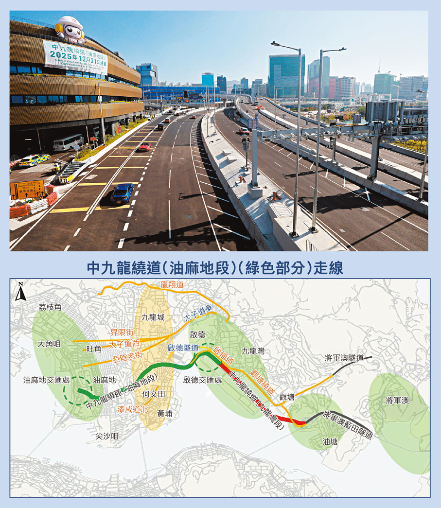 【點新聞報道】被形容為世界級極難施工的中九龍繞道,昨日(21日)其油麻地段正式通車啟用。香港文匯報記者昨日與立法會候任議員黃永威、油尖旺區議員陳少棠駕車實測,繞過了以往多個交通樽頸及塞車位,全程暢通無阻,由柯士甸道圓方往啟德僅花11分鐘;由佐敦往觀塘非繁忙時間全程約10分鐘,比舊路快3分鐘。繞道更有助減輕加士居道等幹道的壓力,但由於指示仍未完備,實測期間險些走錯路,黃永威建議政府改善路牌指示。特區政府運輸及物流局局長陳美寶在通車儀式上表示,該工程運用「上天、下地、出海」等多項技術,團隊迎難而上的專業表現至今獲近100個獎項,展現香港堅毅不屈、匠心獨運的精神,並強調特區政府會秉持基建須先行原則,推動社會復常與經濟發展。