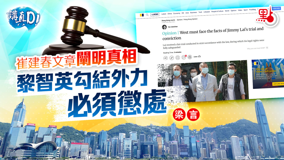 從崔建春的署名文章,我們不難看到三個有層次、有理據的重點,其一是黎智英以「新聞工作者」為包裝,但行為實則是請求外國「制裁」香港特區,嚴重危害國家安全,必須依法受到懲處;其次是在審訊過程,既公開透明,又符合程序公義,黎智英是經過公平審訊才被定罪,完全符合法治原則;其三提到法治,其實外國勢力不斷干預黎智英案,才是破壞以及干預香港法治,有礙香港司法獨立。