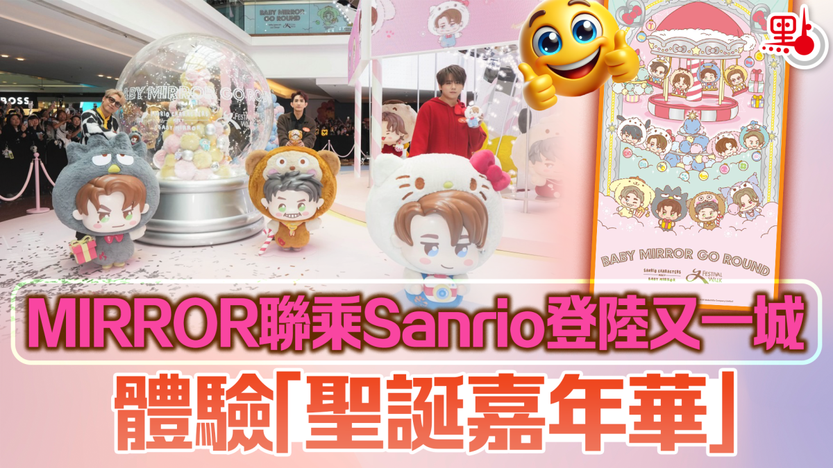 【點新聞報道】人氣男團MIRROR與可愛卡通角色Sanrio Characters聯乘的「BABY MIRROR GO ROUND」於今次聖誕登陸又一城,不僅可以與換上Sanrio角色服飾的BABY MIRROR合影,還能打卡多個聖誕主題裝置,鏡粉不容錯過!