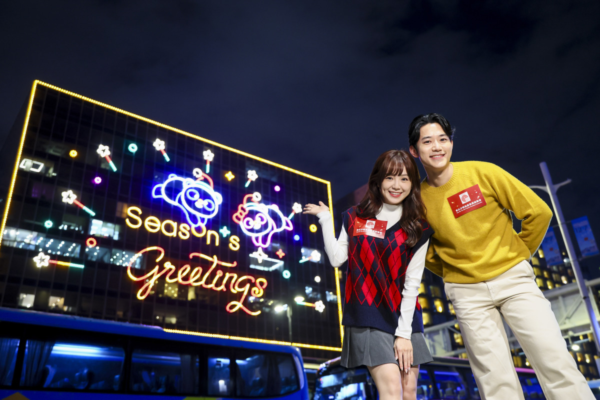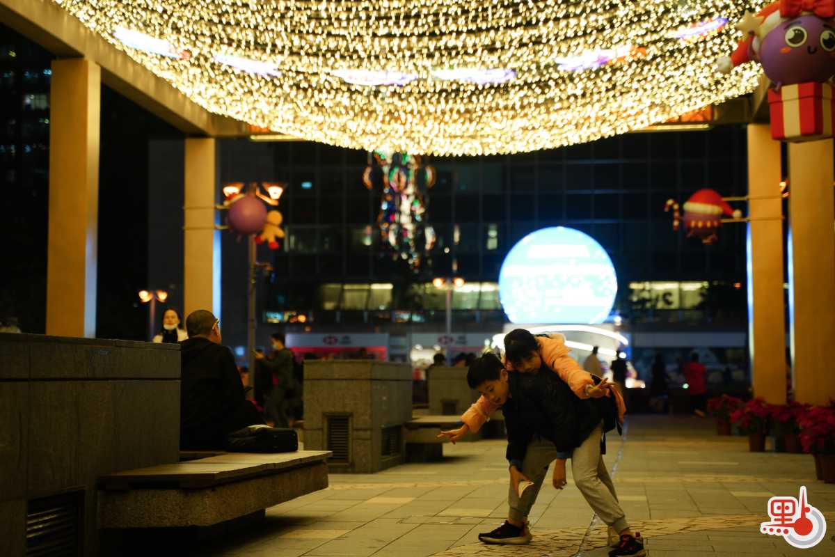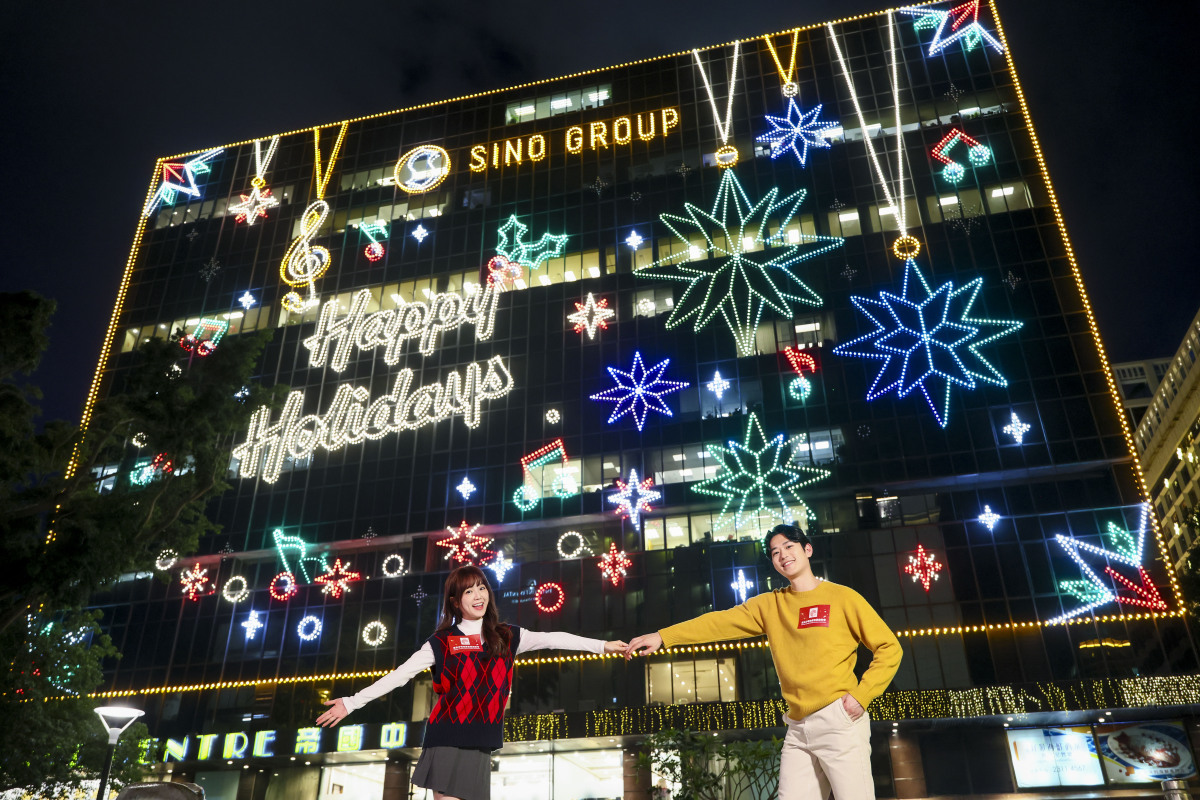南洋中心外牆則以繽紛色彩繪出聖誕圖景,燈飾融入聖誕老人、禮物、糖果與星星等節慶元素,牆上更飾有「Merry X'mas」,傳遞聖誕祝福;永安廣場則以可愛的熊貓圖案點綴,伴以「Season's Greetings」溫馨問候。