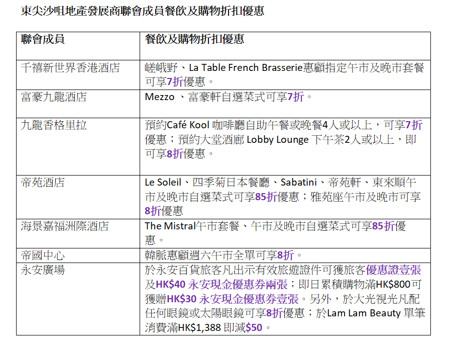 為與市民共迎佳節,東尖沙咀地產發展商聯會成員商戶推出多項節日餐飲及購物優惠,與大眾分享冬日暖意與節日喜悅。