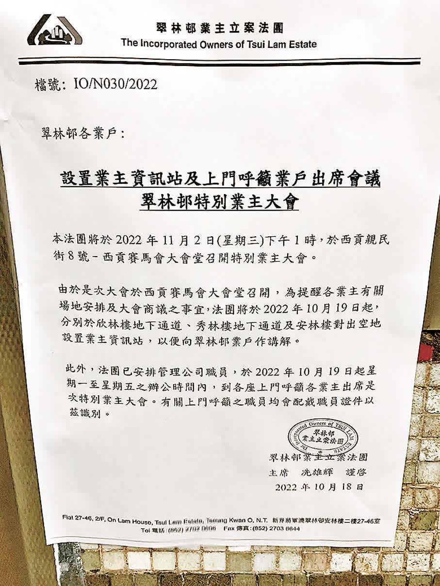 以益利洋樓為例,她購入大廈單位不足兩個月即出任法團委員,2017年升任秘書,2019年起任主席至今,2024年收到強制驗樓通知,據悉目前正籌備大維修。