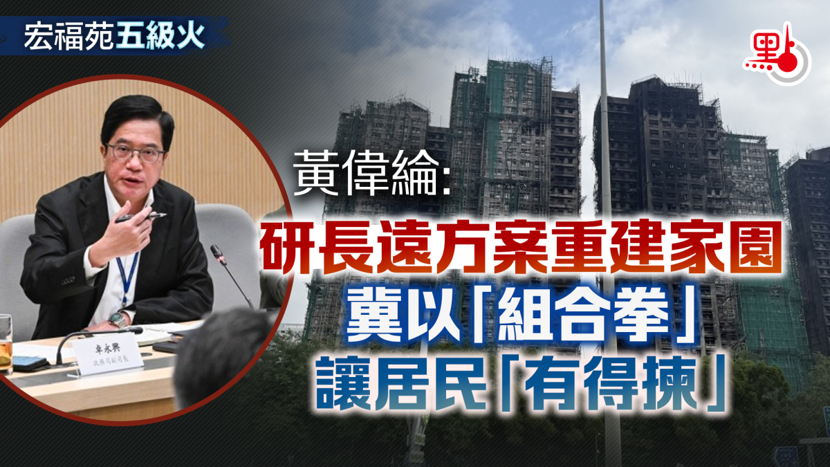 黃偉綸又提到,行政長官已指示「應急住宿安排工作組」,研究及提出長遠方案,以情、理、法處理,照顧居民的個別情況和意願,亦要善用資源,協助受影響的家庭重建家園,盡快回復正常生活。政府希望以「組合拳」的方式讓居民「有得揀」。