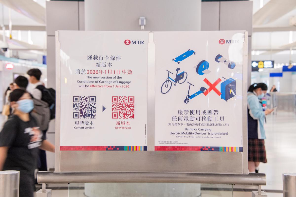港鐵表示,新規定下,除了現獲豁免殘疾人士使用的電動輪椅外,乘客一律禁止攜帶電動可移動工具進入港鐵範圍。一般而言,這些電動可移動工具均配備高容量鋰電池,而部分可移動工具亦體積龐大,有可能阻礙通道或對其他乘客造成不便。在進行審慎風險評估的同時,港鐵亦參考了其他鐵路系統的相關做法。公司會更新港鐵「運載行李條件」,並會於車站張貼告示提醒乘客。