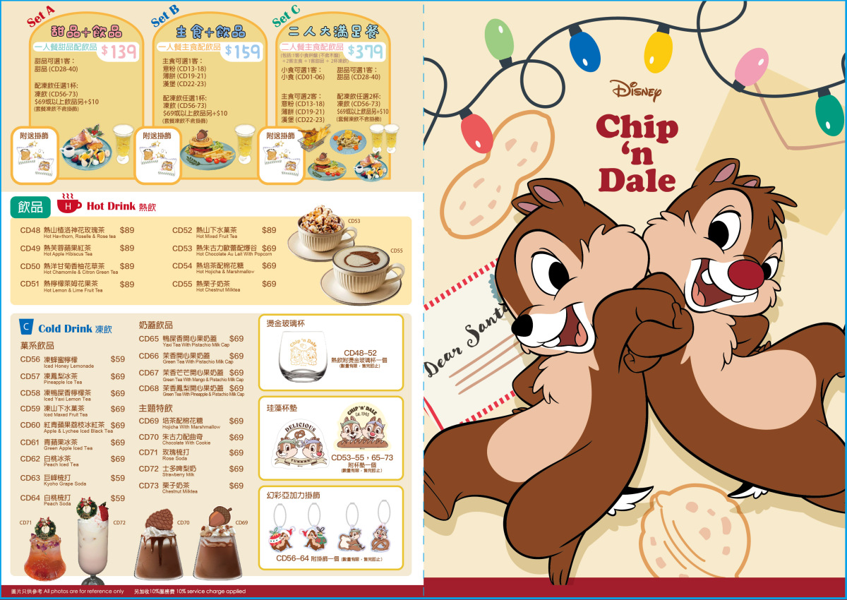 期間限定店特別推出以聖誕為主題的角色套餐,無論是一個人靜靜享受、與摯愛共享二人時光,還是與親友溫馨聚會,「Seasonal Celebration with Chip 'n' Dale」都為您準備好專屬節日盛宴。