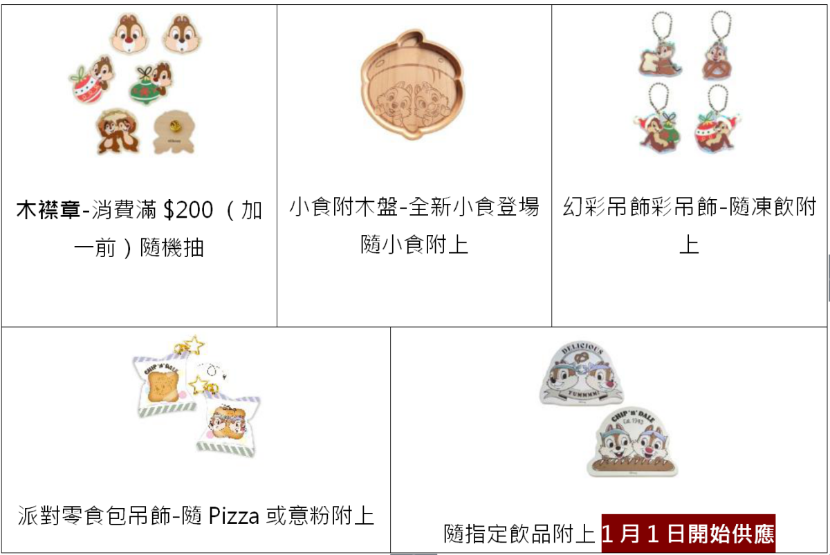 凡堂食指定食品,即可獲「Chip 'n' Dale」木系紀念品: