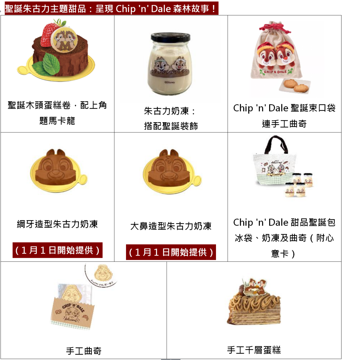 限定贈品:「Chip 'n' Dale」主題聖誕襪、公仔襟針各一個(或主題購物袋)及聖誕版木襟章