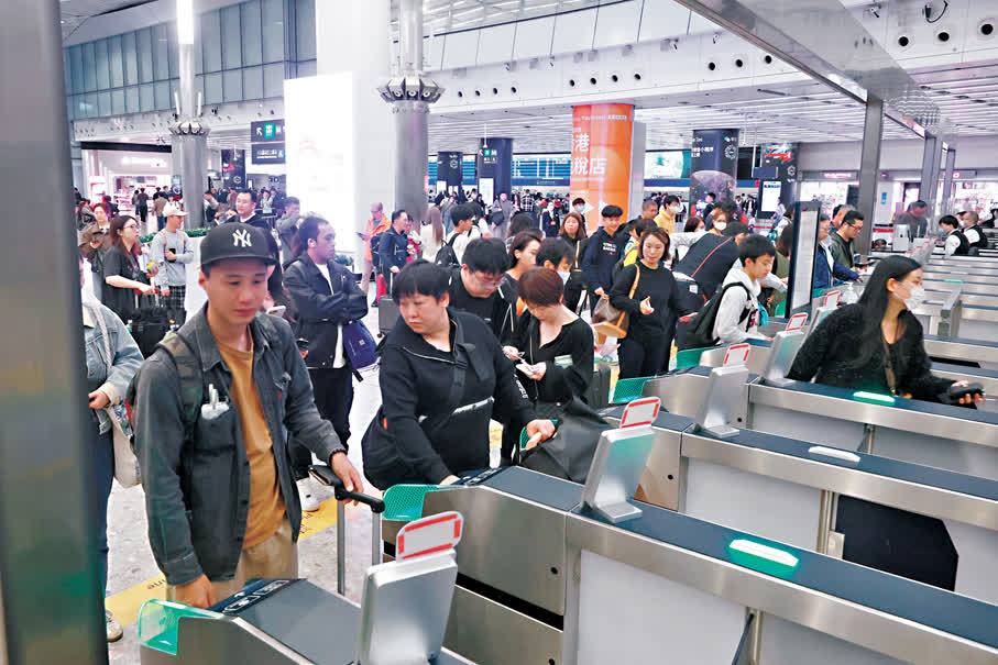 香港國際機場昨日迎來出入境人潮,其中離境大堂擠滿趁假期外遊的巿民,航空公司櫃枱前擠滿推着行李辦理登機手續的巿民,他們外遊目的地包括韓國、日本、越南及台灣地區,亦有巿民到內地度假。機場管理局預計聖誕及新年假期,每日最多約有1,200班航班升降,單日客流最高峰達20萬人次,機場停車場所有長期停車位昨日一度泊滿車。西九高鐵站亦人頭湧湧,香港旅遊業議會總幹事楊淑芬估計,聖誕假期約有1,500個旅行團離港,當中六成是往內地的高鐵團。