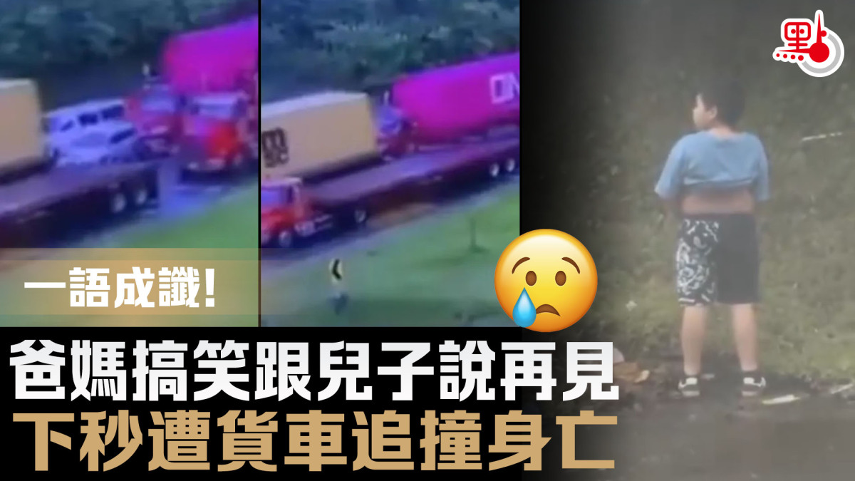 【點新聞報道】哥倫比亞一對父母,日前載兩名孩子外出時遇到大塞車,一名兒子趁機下車到路邊小便,爸媽在車內拍攝,還開玩笑跟他說再見。豈料,私家車隨即被一輛貨櫃車追撞,父母都因此喪生。