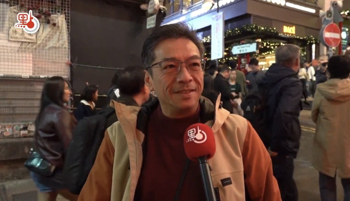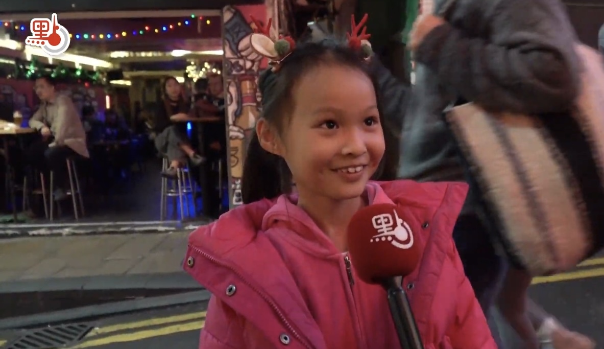 她的爸爸葉先生笑言蘭桂坊亦是自己那個年代的地標,女兒來到這裏也非常開心。他補充,昨晚也帶女兒去了尖沙咀,她非常喜歡看燈飾,尤其是海運大廈有很多打卡位。最後,葉先生與女兒一同送上祝福:「聖誕快樂,新年進步,世界和平,大家身體健康。」