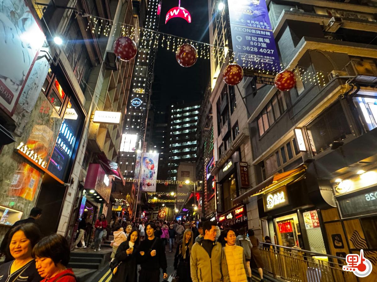 【點新聞報道】今日(25日)是聖誕節,中環蘭桂坊酒吧街洋溢着濃厚的節日氣氛,街道兩旁的店舖掛滿聖誕裝飾。不少市民和遊客精心打扮,戴上聖誕帽、馴鹿髮箍等,甚至扮成聖誕老人,在此拍照打卡,歡慶佳節。