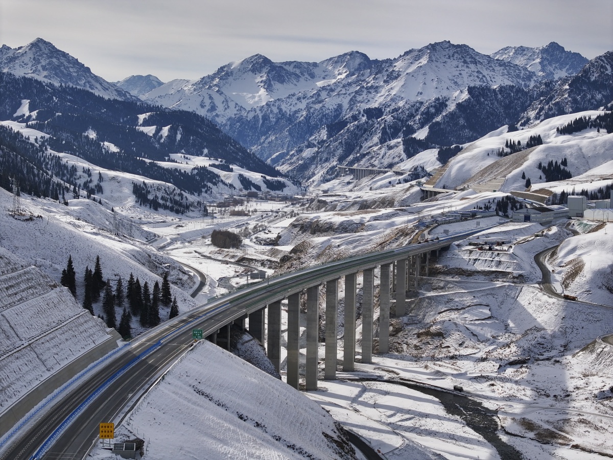 國家重點工程烏尉高速,全長324.7公里,沿線地形地貌複雜。建設者奮戰在天山腹地,先後攻克多個世界性築路難題,橋隧結合,跨越天塹,歷經5年多建成。
