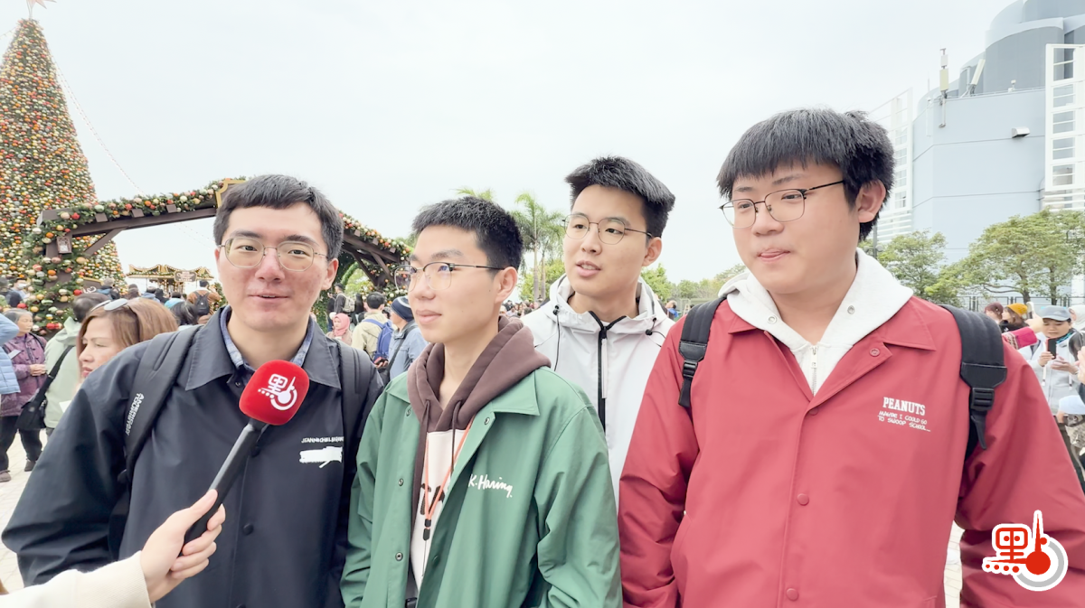 另一廂,來自華東政法大學的一班同學仔,剛剛結束考研,便約好一同來香港,開啟難得的假期。他們先後到中環、太平山等經典景點打卡,品嘗菠蘿油、蛋撻、凍檸茶等美食。今日,他們再來西九文化區,「一直聽聞香港的聖誕氛圍濃厚,所以特意來香港玩幾天,街邊的裝飾,太平山頂纜車的裝飾,還有人們頭上戴的裝飾,這些小細節都能體現出來。」