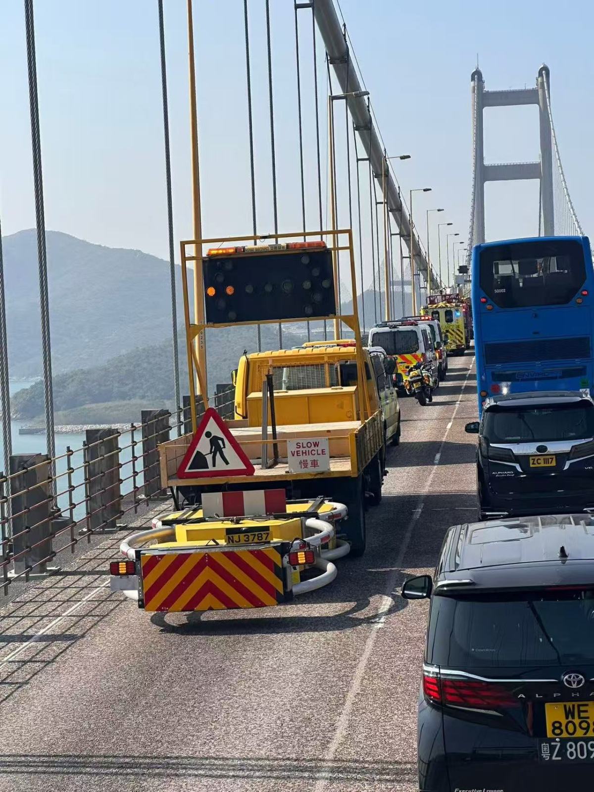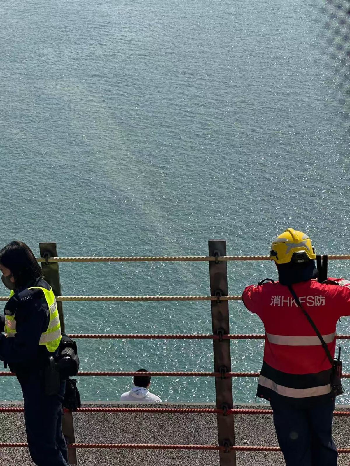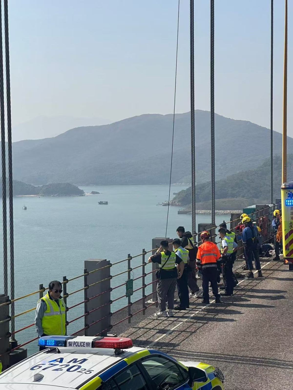 【點新聞報道】聖誕節假期的第三天,青馬大橋發生突發事件。今日(27日)上午11時51分,青馬大橋往機場方向,一名男子危站橋邊,懷疑想跳海尋短,多名途經人士見狀報案求助。救援人員及警方立即趕抵現場,救護車在場戒備,談判專家正趕抵現場。