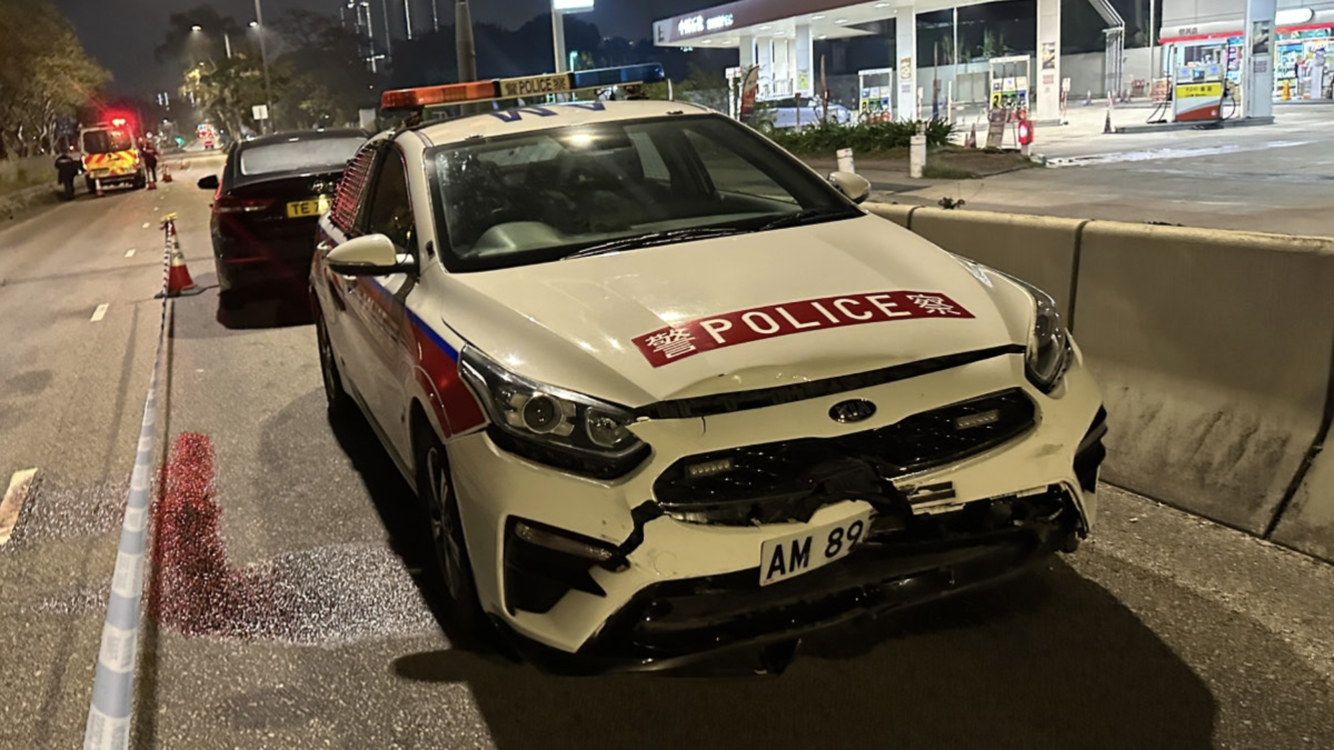 消息指,警方事發前已在五柳路發現私家車形跡可疑,有人懷疑將可疑物品扔出車外,警方跟隨私家車期間,該車在青山公路屏山段撞到警車。至晚上7時許,警員仍然封鎖現場一帶,以電筒照草叢搜索違禁品。現場所見,被撞警車車頭損毀、泵把斷開,車尾泵把亦鬆脫跌在地上,地面有漏油痕跡。